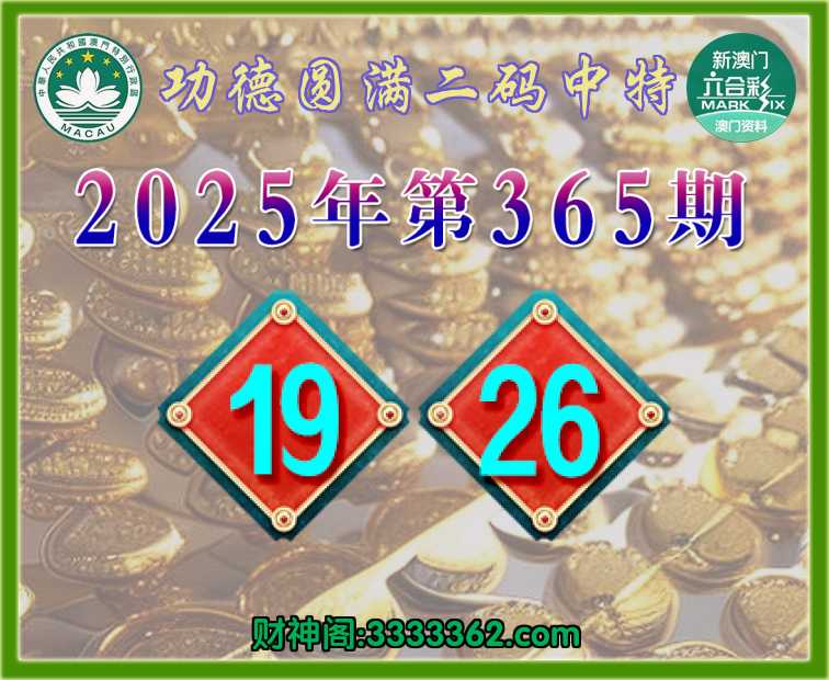 365期:【功德圆满】 🐓二码中特🐓【19.26】开:26