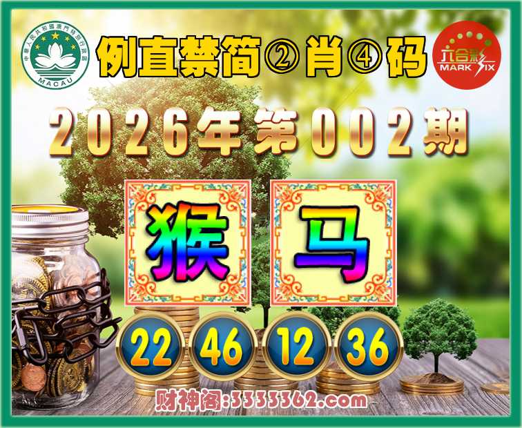 002期:【例直禁简】 🏅②肖④码🏅【马】【22.46.12.36】开:猴22