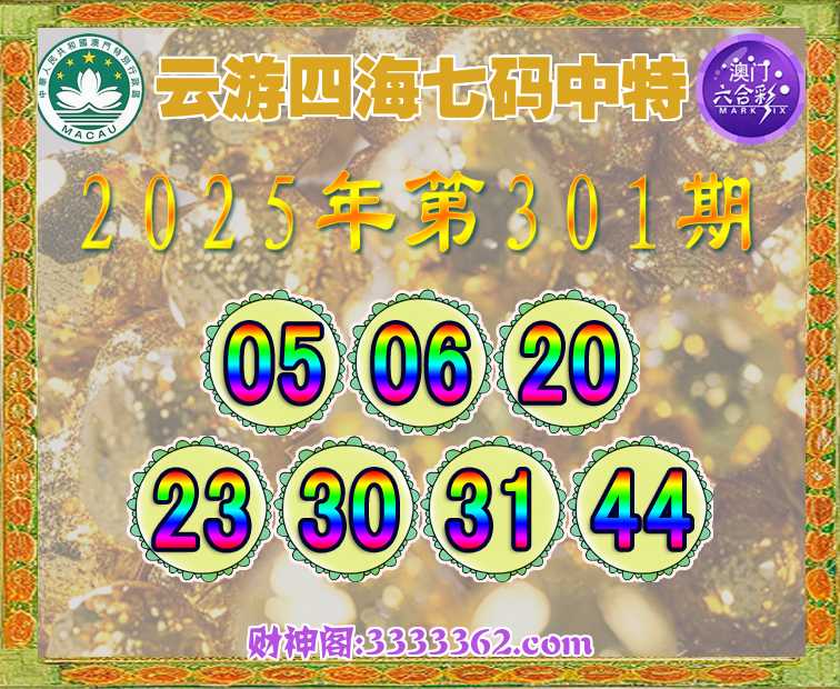 301期:『云游四海』 👚七码中特👚【05.06.20.23.30.31.44】开:05