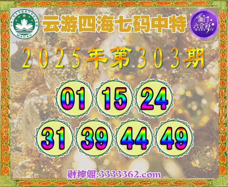 303期:『云游四海』 👚七码中特👚【01.15.24.31.39.44.49】开:15