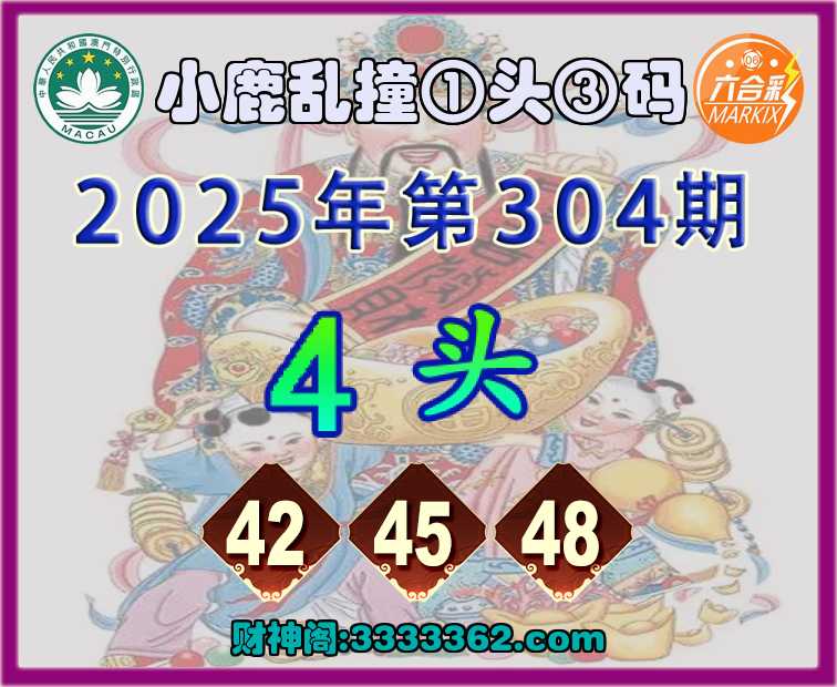304期: 👑《小鹿乱撞》 👑①头③码👑【4头主:42.45.48】开:马48