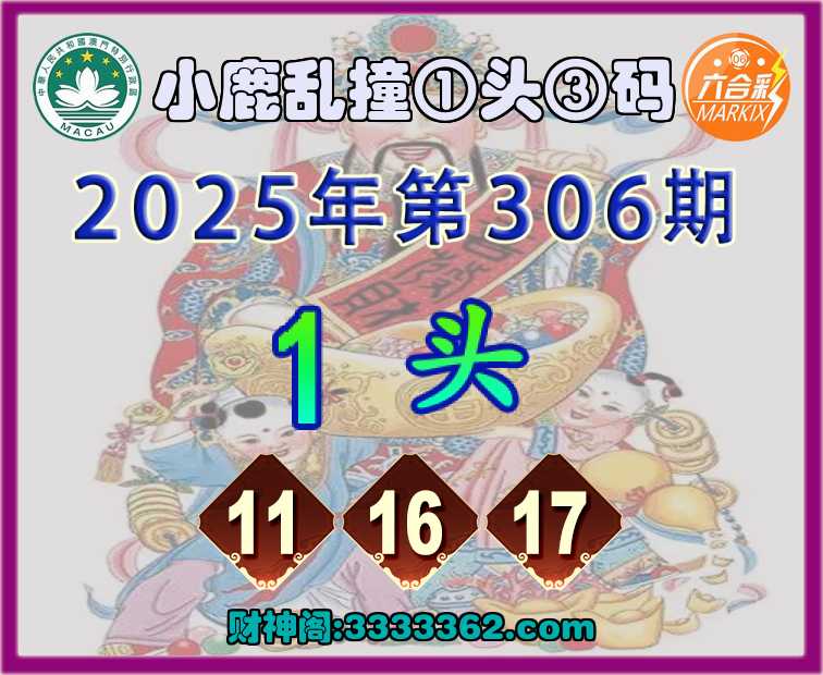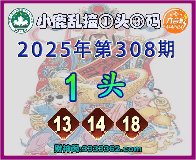 主题 : 308期:小鹿乱撞【①头③码】〓 赚钱秘籍