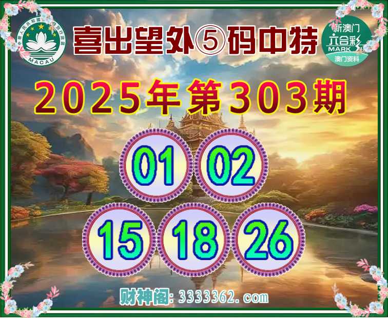 303期:《喜出望外》 🚵‍♀️⑤码中特🚵‍♀️【01.02.15.18.26】开:15