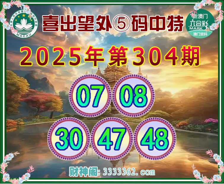 304期:《喜出望外》 🚵‍♀️⑤码中特🚵‍♀️【07.08.30.47.48】开:48