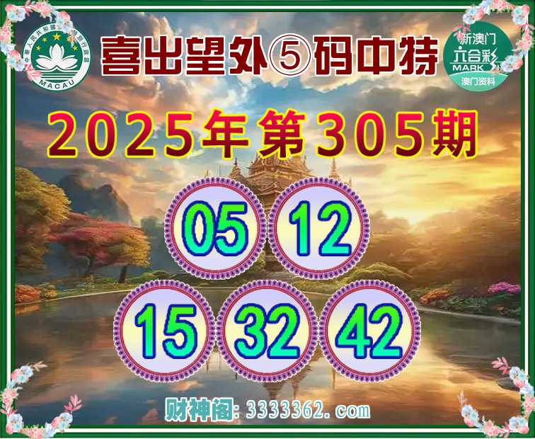 305期:《喜出望外》 🚵‍♀️⑤码中特🚵‍♀️【05.12.15.32.42】开:42