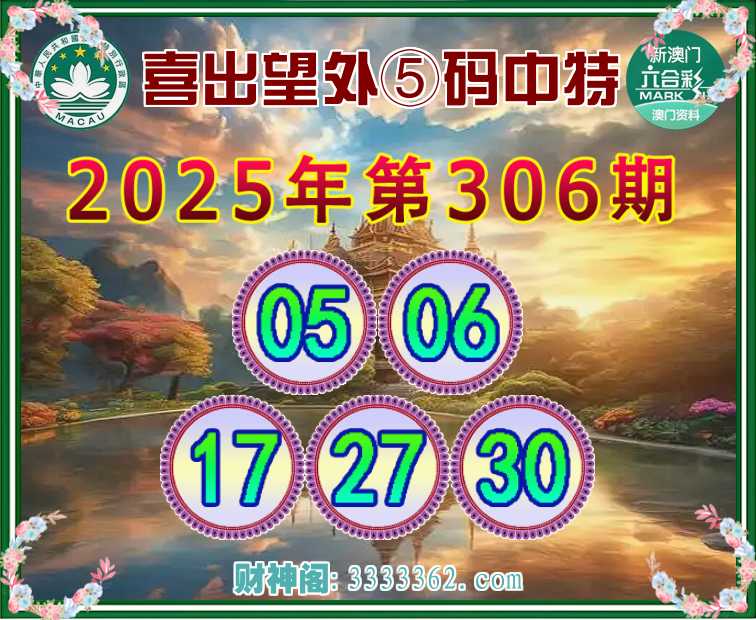 306期:《喜出望外》 🚵‍♀️⑤码中特🚵‍♀️【05.06.17.27.30】开:17