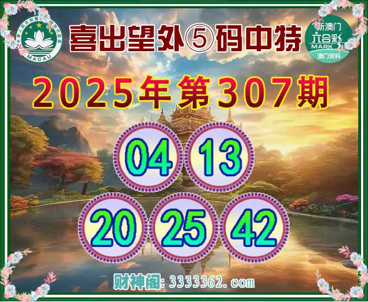 307期:《喜出望外》 🚵‍♀️⑤码中特🚵‍♀️【04.13.20.25.42】开:20