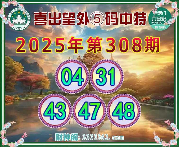 308期:《喜出望外》 🚵‍♀️⑤码中特🚵‍♀️【04.31.43.47.48】开:00准
