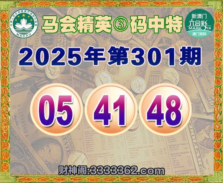 301期:〖马会精英〗 😍③码中特😍【05.41.48】开:05