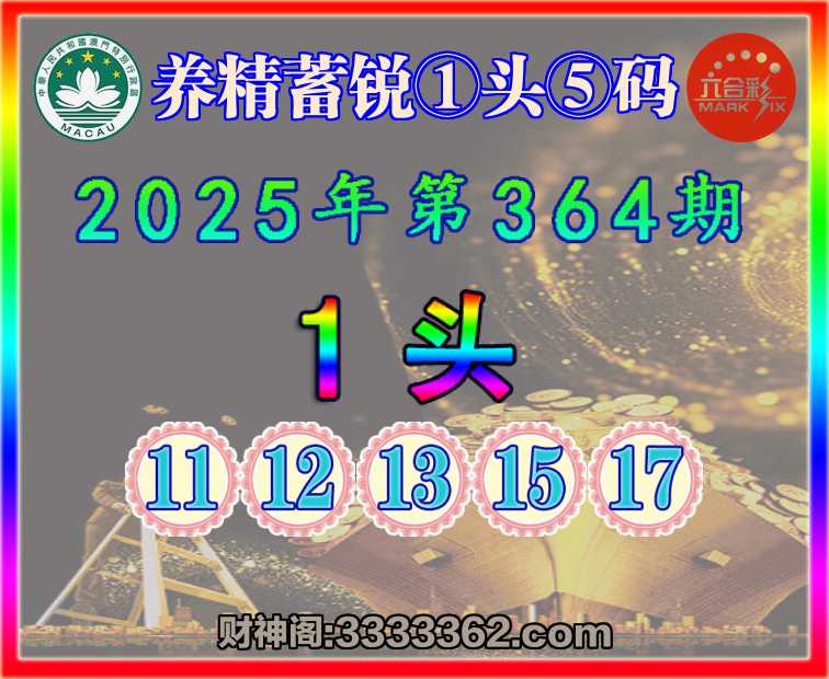 364期:『养精蓄锐』 🀄①头⑤码🀄【1头主:11.12.13.15.17】开:12