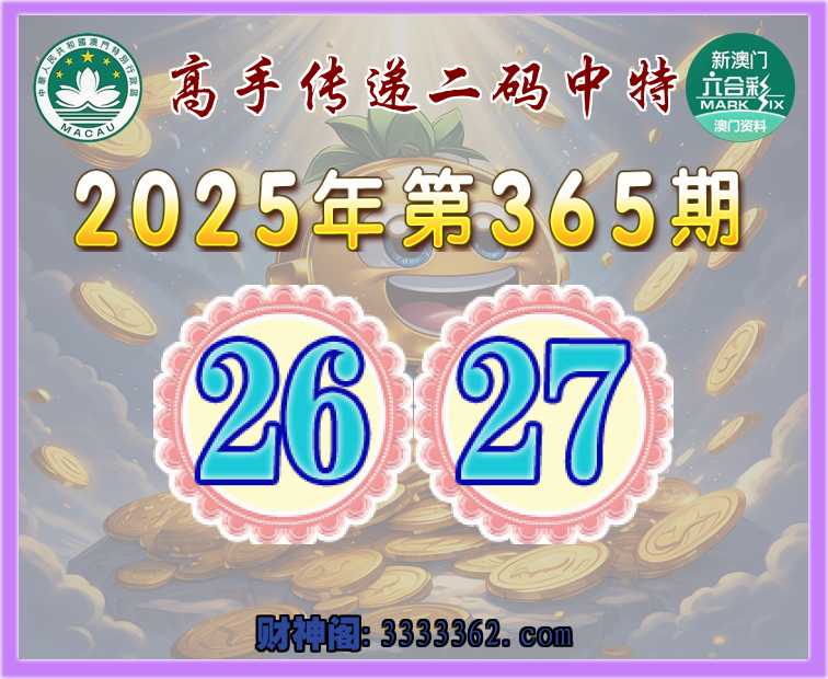 365期:『高手传递』 🧩二码中特🧩【26.27】开:26