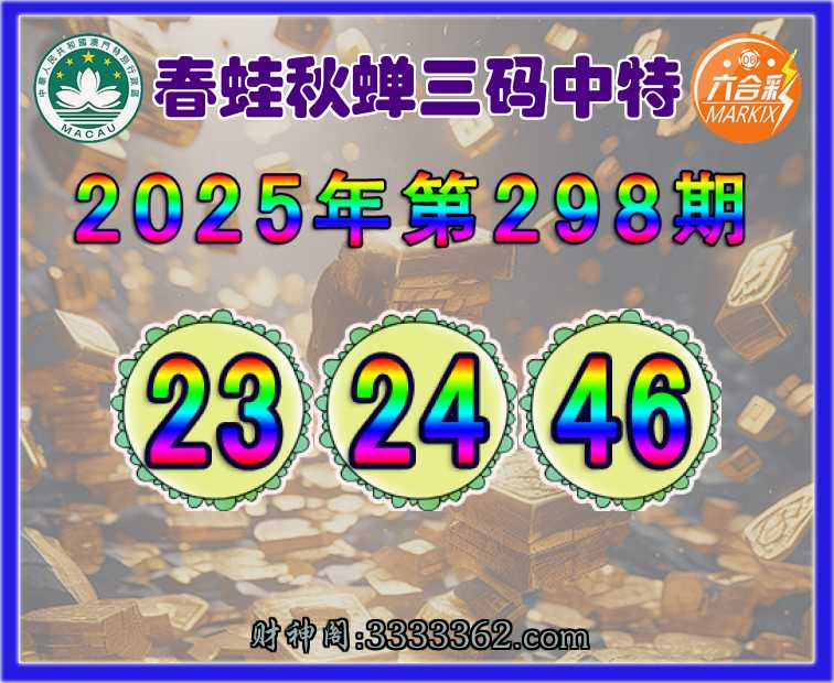 298期: 🏅『春蛙秋蝉』 🏅三码中特🏅【23.24.46】开:23