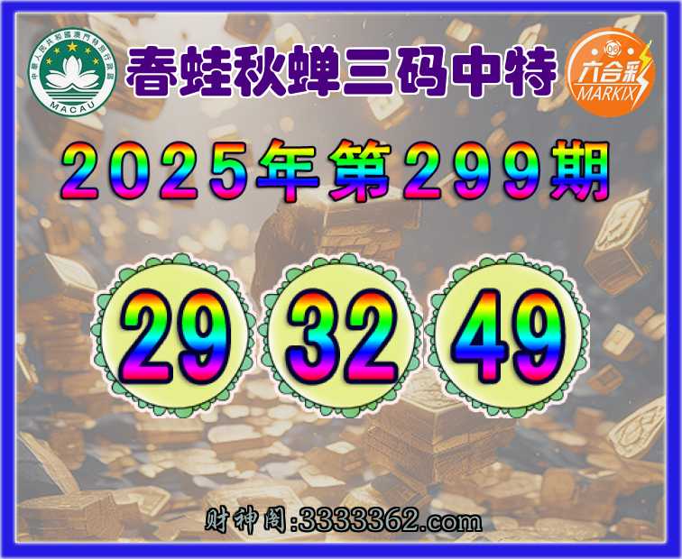 299期: 🏅『春蛙秋蝉』 🏅三码中特🏅【29.32.49】开:49