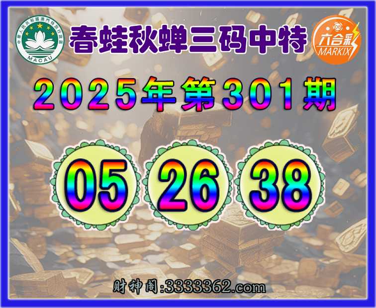 301期: 🏅『春蛙秋蝉』 🏅三码中特🏅【05.26.38】开:05