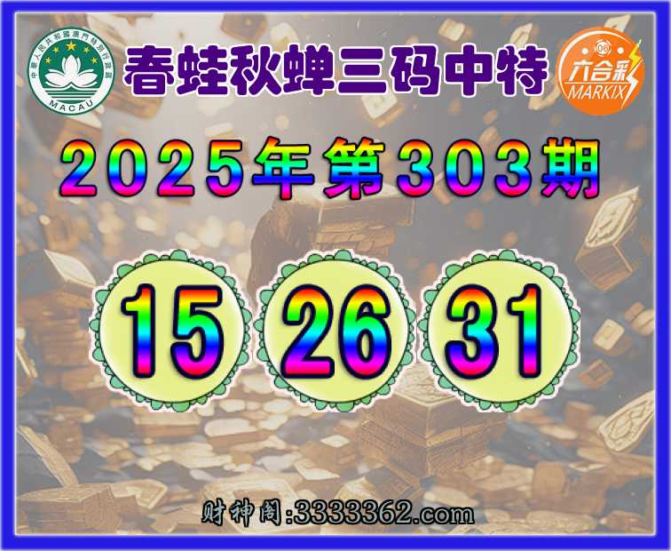 303期: 🏅『春蛙秋蝉』 🏅三码中特🏅【15.26.31】开:15