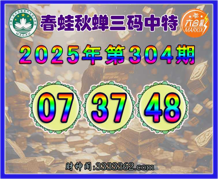 304期: 🏅『春蛙秋蝉』 🏅三码中特🏅【07.37.48】开:48