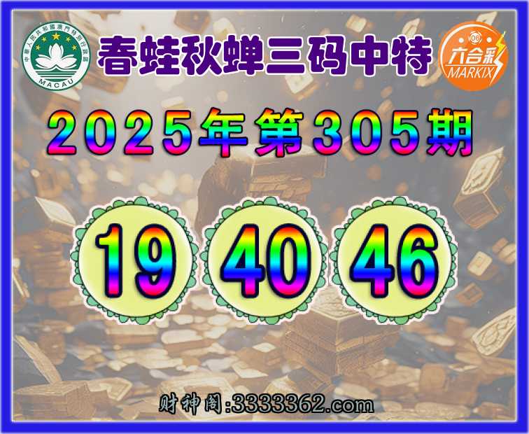 305期: 🏅『春蛙秋蝉』 🏅三码中特🏅【19.40.46】开:00准