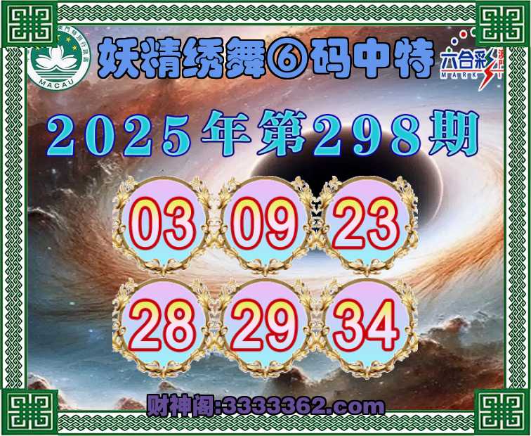 298期:《妖精绣舞》 ☺️⑥码中特☺️【03.09.23.28.29.34】开:23