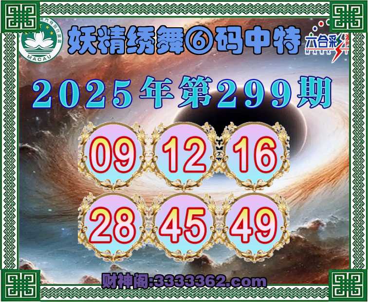 299期:《妖精绣舞》 ☺️⑥码中特☺️【09.12.16.28.45.49】开:49