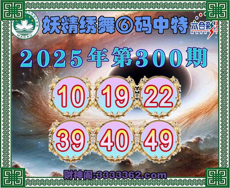 300期:《妖精绣舞》 ☺️⑥码中特☺️【10.19.22.39.40.49】开:40
