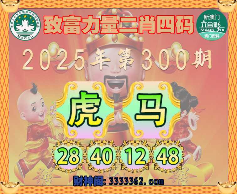 300期:【致富力量】 ☝️二肖四码☝️【马】【28.40.12.48】开:虎40