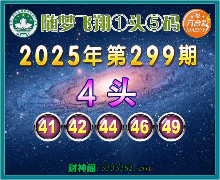 299期:『随梦飞翔』 🍔①头⑤码🍔【4头主:41.42.44.46.49】开:49