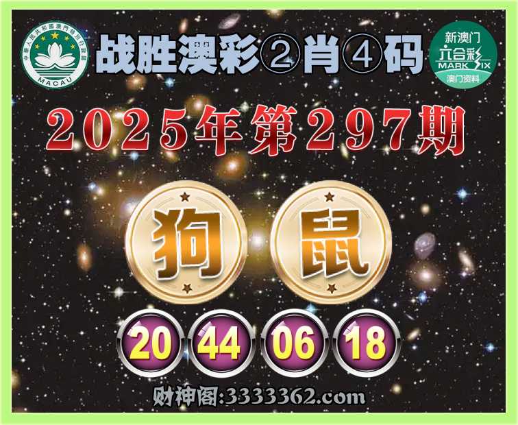 297期: 战胜澳彩 🍀②肖④码🍀【鼠】【20.44.06.18】开:狗44