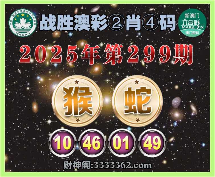 299期: 战胜澳彩 🍀②肖④码🍀【猴】【10.46.01.49】开:蛇49