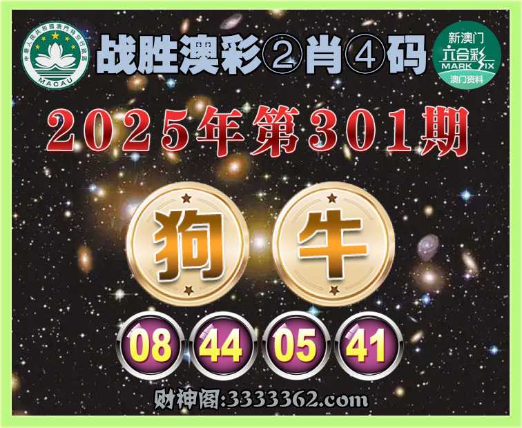 301期: 战胜澳彩 🍀②肖④码🍀【狗】【08.44.05.41】开:牛05