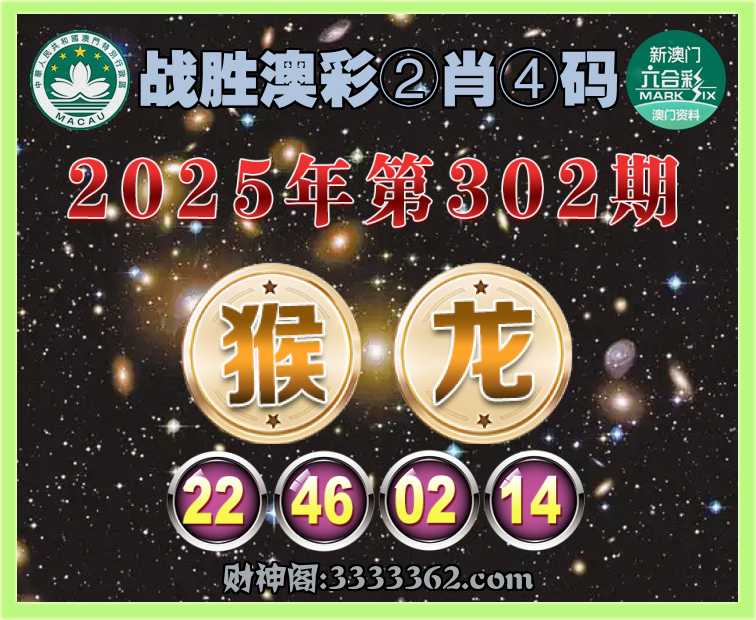 302期: 战胜澳彩 🍀②肖④码🍀【龙】【22.46.02.14】开:猴22