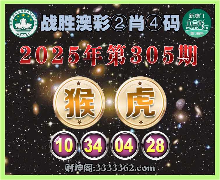 305期: 战胜澳彩 🍀②肖④码🍀【猴虎】【10.34.04.28】开:00准