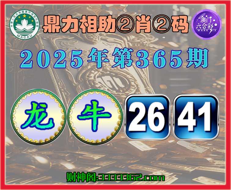 365期:『鼎力相助』 👉②肖②码👉【牛】【26.41】开:龙26