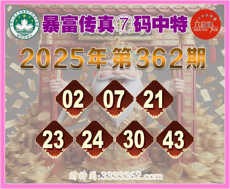 362期:『暴富传真』 ☝️⑦码中特☝️【02.07.21.23.24.30.43】开:23