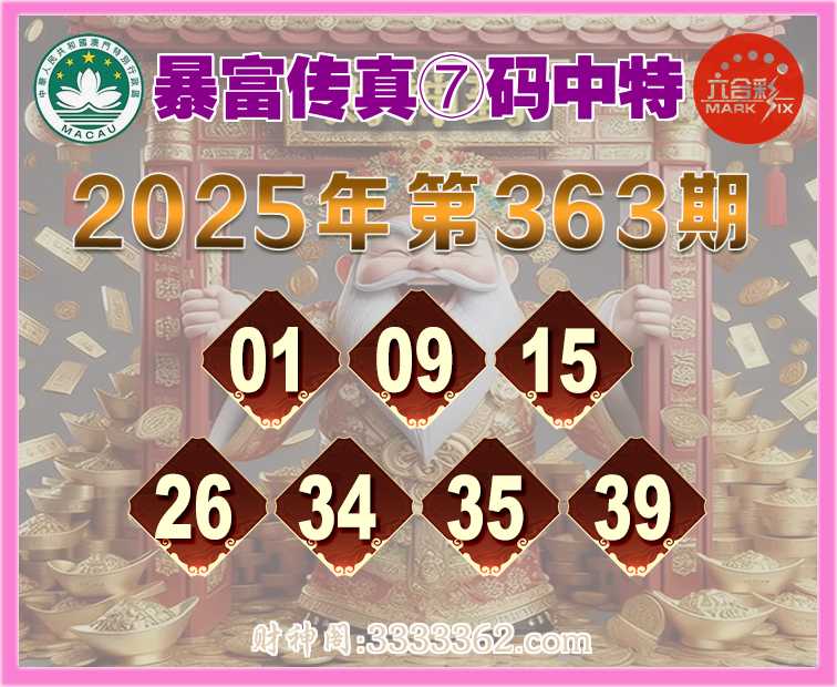363期:『暴富传真』 ☝️⑦码中特☝️【01.09.15.26.34.35.39】开:26