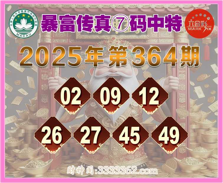 364期:『暴富传真』 ☝️⑦码中特☝️【02.09.12.26.27.45.49】开:12