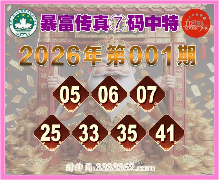 001期:『暴富传真』 ☝️⑦码中特☝️【05.06.07.25.33.35.41】开:00准