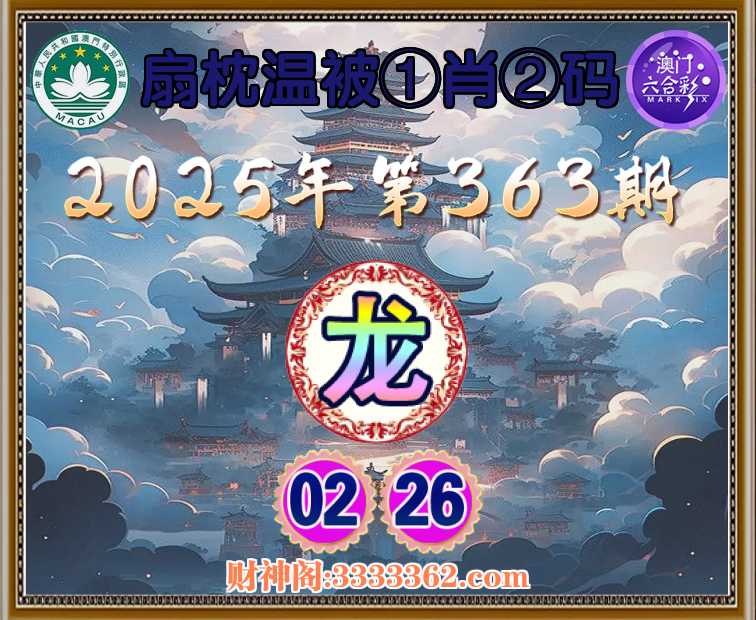363期:【扇枕温被】 🐁①肖②码🐁【】【02.26】开:龙26