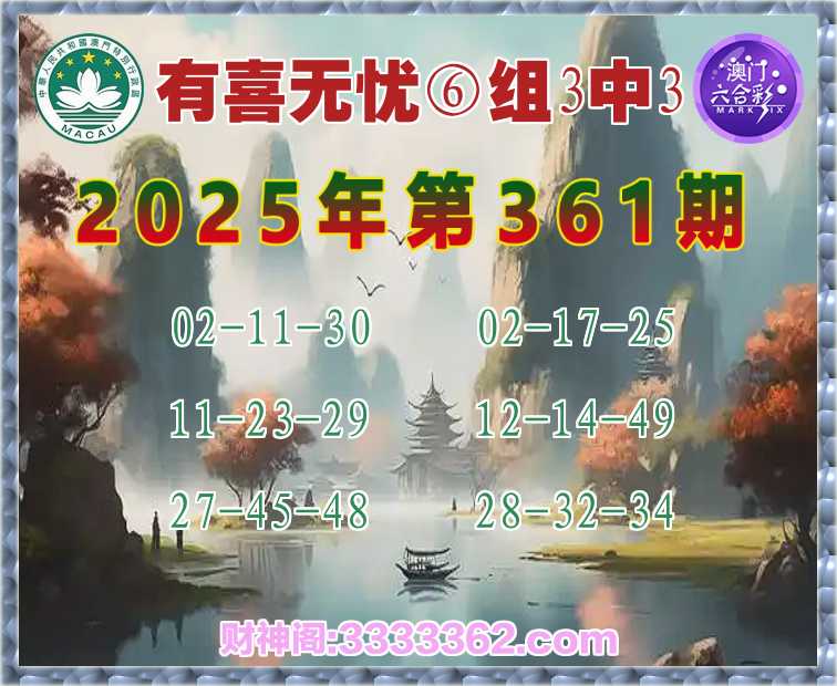 361期: 有喜无忧 🍁⑥组3中3🍁