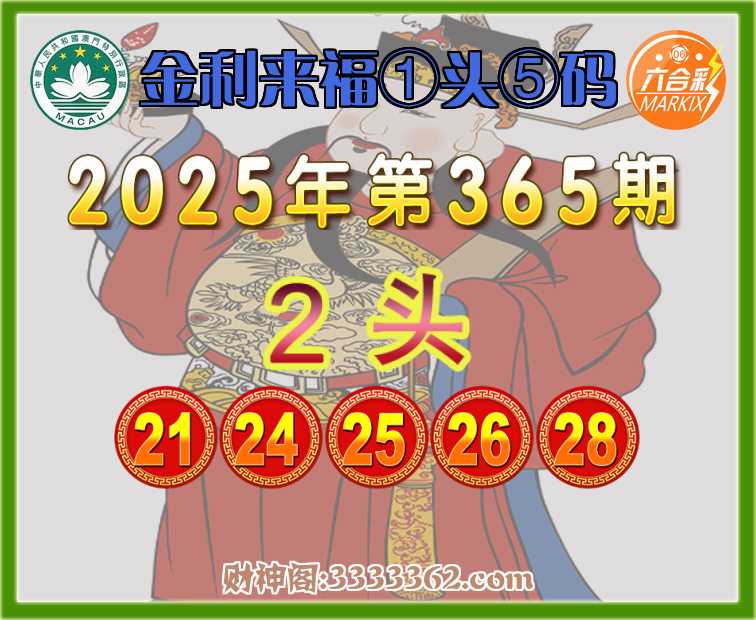 365期:【金利来福】 🐓①头⑤码🐓【2头主:21.24.25.26.28】开:26