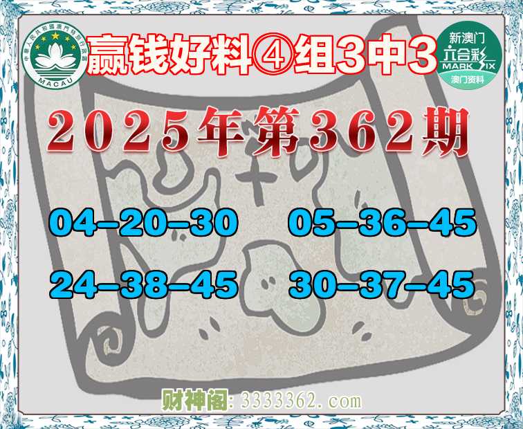 362期:【赢钱好料】 🍃④组3中3🍃
