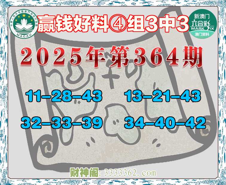 364期:【赢钱好料】 🍃④组3中3🍃