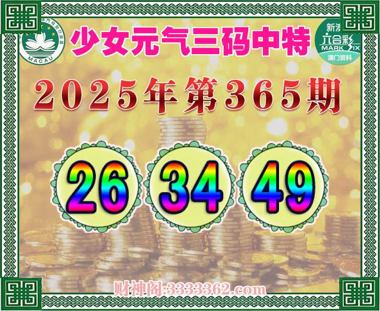 365期:『少女元气』 🤩三码中特🤩【26.34.49】开:26