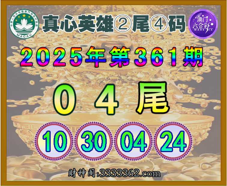 361期:【真心英雄】 🌳②尾④码🌳【04尾主:10.30.04.24】开:24