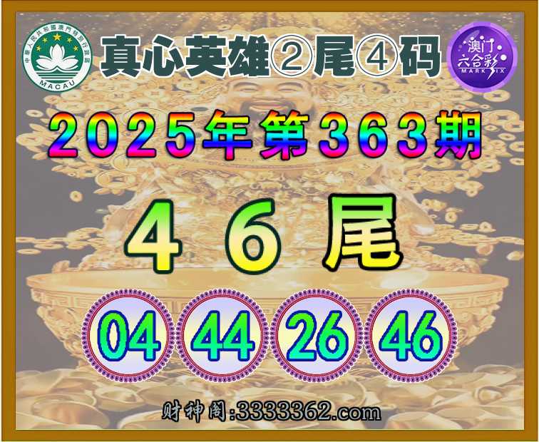 363期:【真心英雄】 🌳②尾④码🌳【46尾主:04.44.26.46】开:26