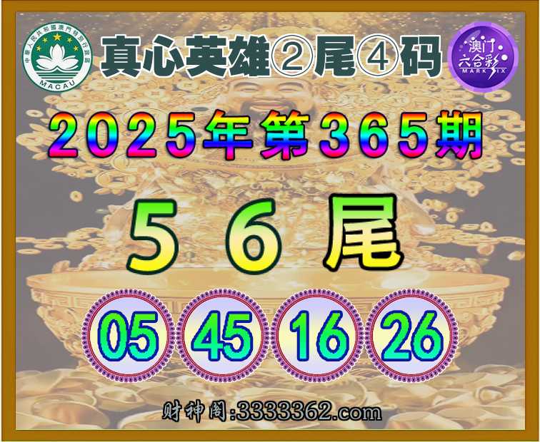365期:【真心英雄】 🌳②尾④码🌳【56尾主:05.45.16.26】开:26