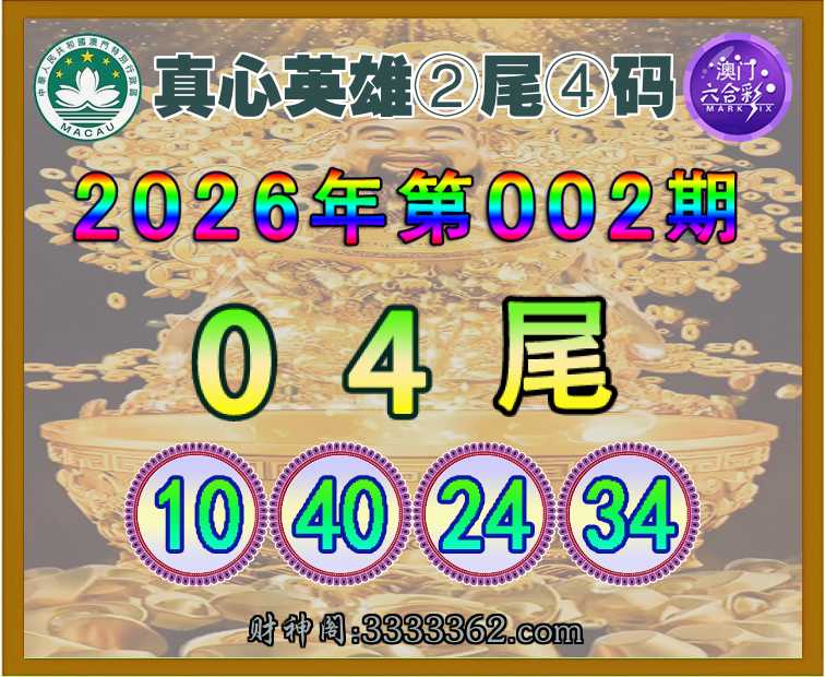 002期:【真心英雄】 🌳②尾④码🌳【04尾主:10.40.24.34】开:00准