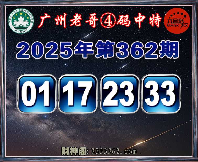 362期:【广州老哥】 🪢④码中特🪢【01.17.23.33】开:23