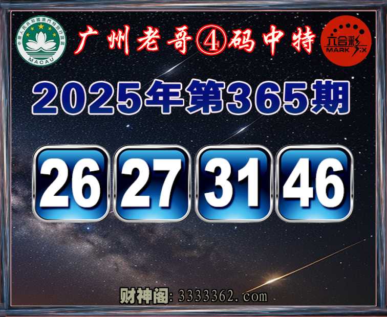 365期:【广州老哥】 🪢④码中特🪢【26.27.31.46】开:26