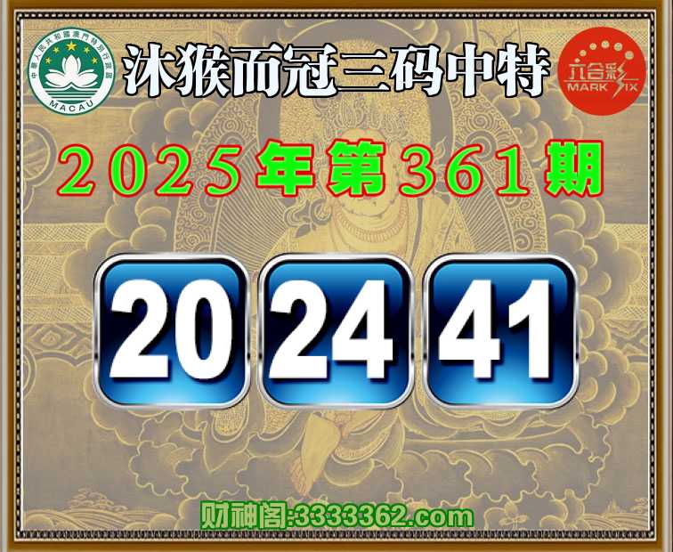 361期:《沐猴而冠》  ♣️三码中特 ♣️【20.24.41】开:24