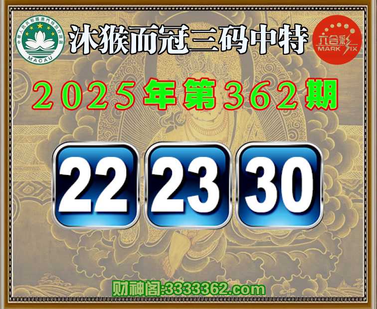 362期:《沐猴而冠》  ♣️三码中特 ♣️【22.23.30】开:23